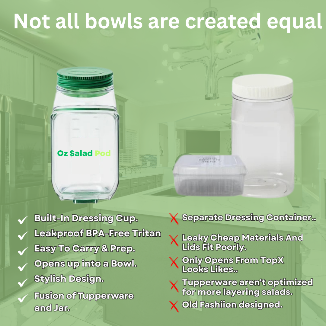 You prep a fresh salad in the morning — but by lunchtime, it’s soggy, messy, and totally unappetizing. Oz Salad Pod fixes all of that. Its smart layered design keeps every ingredient crisp until you’re ready to mix. Made from premium BPA-free Tritan® (not flimsy plastic containers), it’s leakproof, durable, food-safe, and perfectly sized at 21.6 cm × 11.4 cm